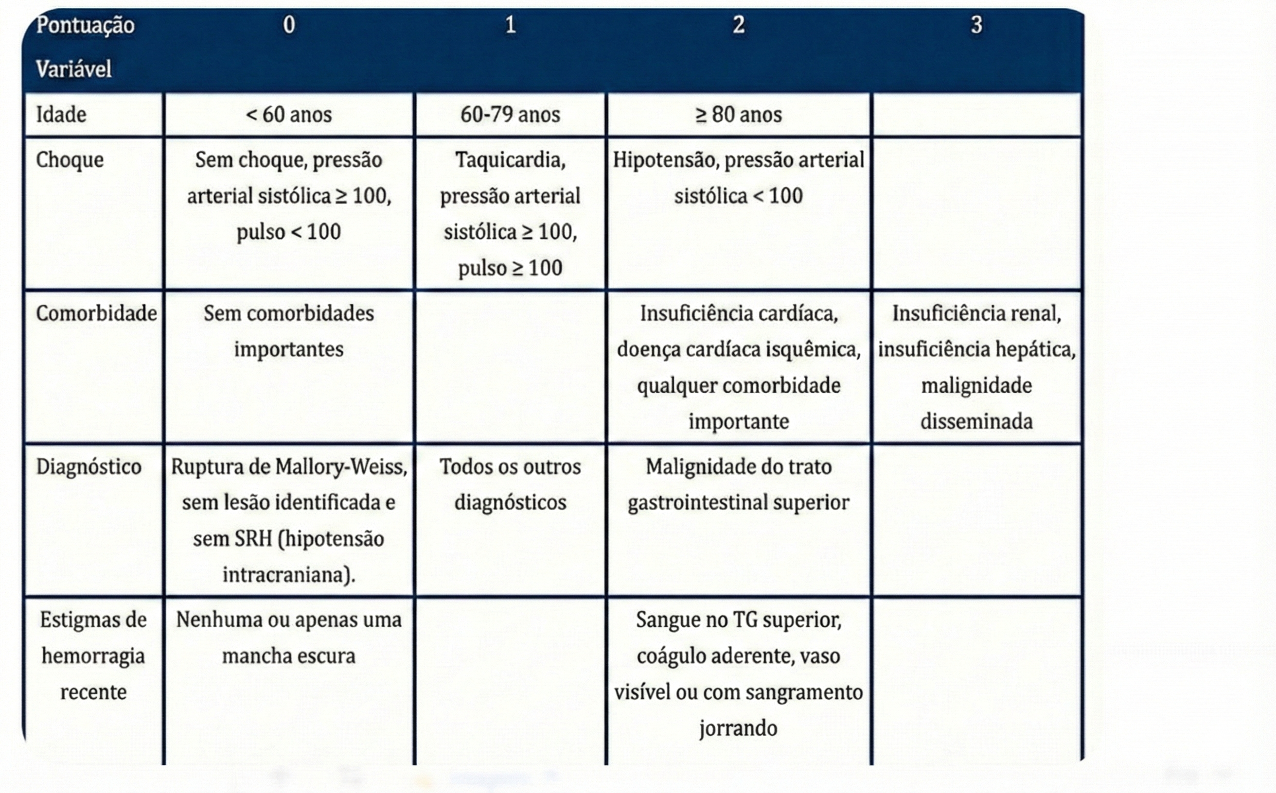 * Um escore 0-1 prediz baixo risco de ressangramento ou morte.